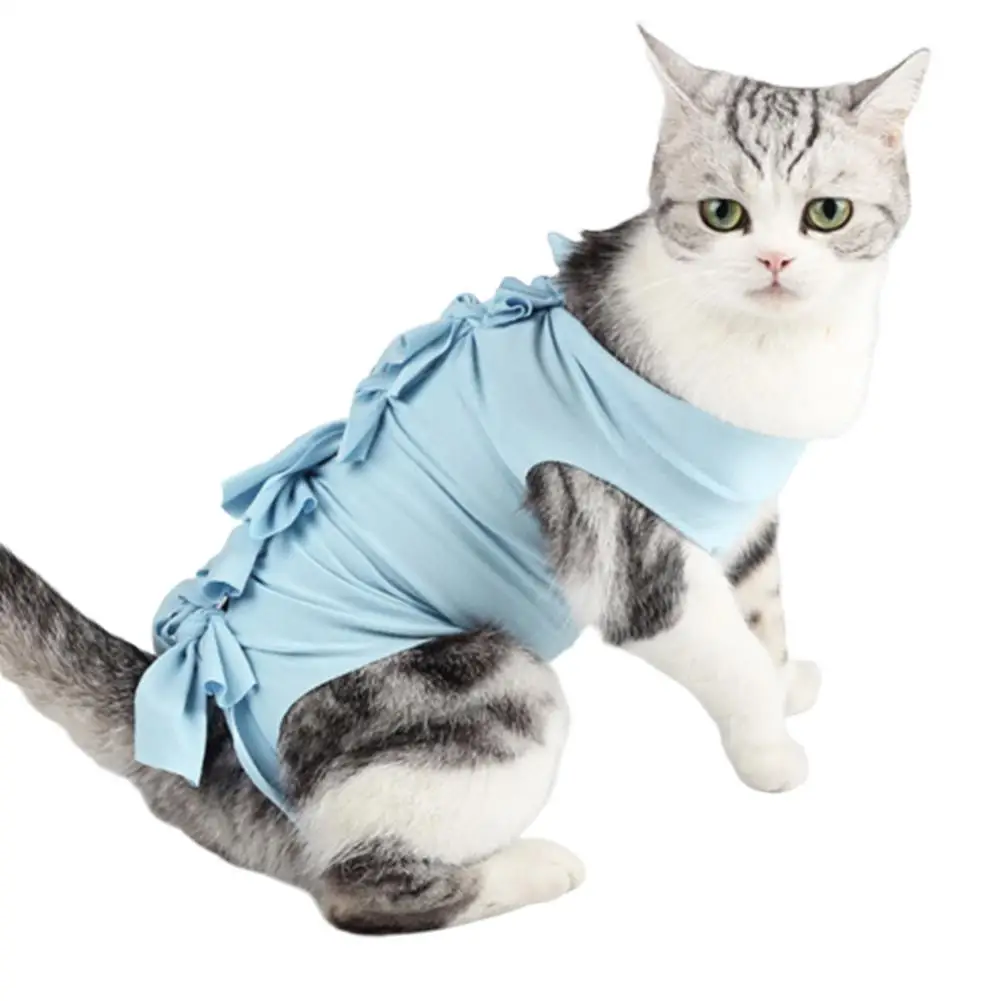 Amazon Com Cat Recovery Suit After Surgery Pet Cone E Collar Alternative Elastic Professional Surgical Bandage Shirt Costume For Puppy Kitten Neutered Abdominal Wound Skin Damage Weaning Xs Blue Cat Pet Supplies